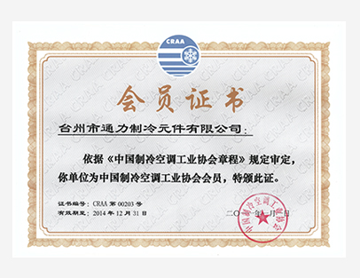 制冷工业协会会员证书
